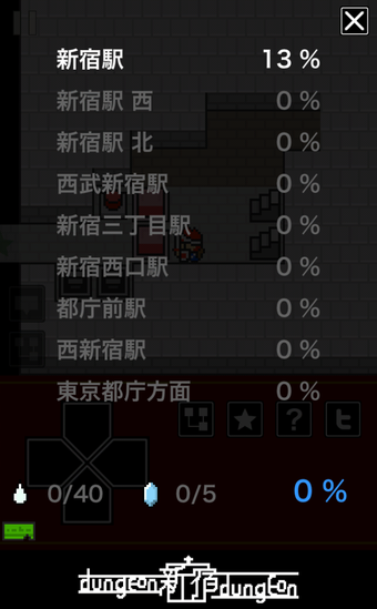 「ノーマルモード」をスタートすると画面に初期のファミコンを思わせるコントローラーが表示されます。上下左右キーでプレイヤーを動かし東京都庁まで進みましょう。途中、宝箱を拾ったりアイテムを手に入れたりしながら進んでいきます。初期のドラクエ(ドラゴンクエスト)のような8ビット風のデザインも味があり、派手なBGMもなく必要最低限の効果音しかないのも好感が持てました。「ノーマルモード」のほかに新宿にある駅を自由に歩くことができる「フリーモード」とお宝や出口を見つけてコレクションする「コレクション」があり、やり込み要素も満載です。